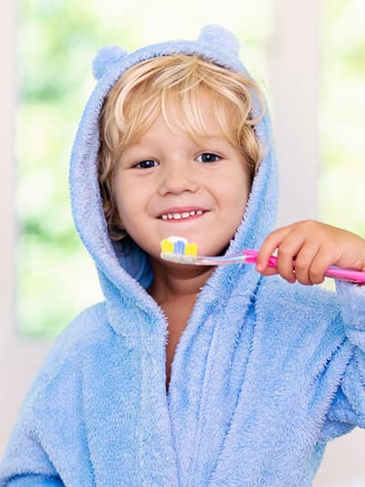 - Make sure your child brushes their teeth at least twice a day with a soft-bristled toothbrush. Use fluoride toothpaste to remove food particles and plaque from the tooth surfaces. Also be sure your child brushes the top surface of the tongue; this will remove any extra plaque-causing food particles and help keep their breath fresh!
